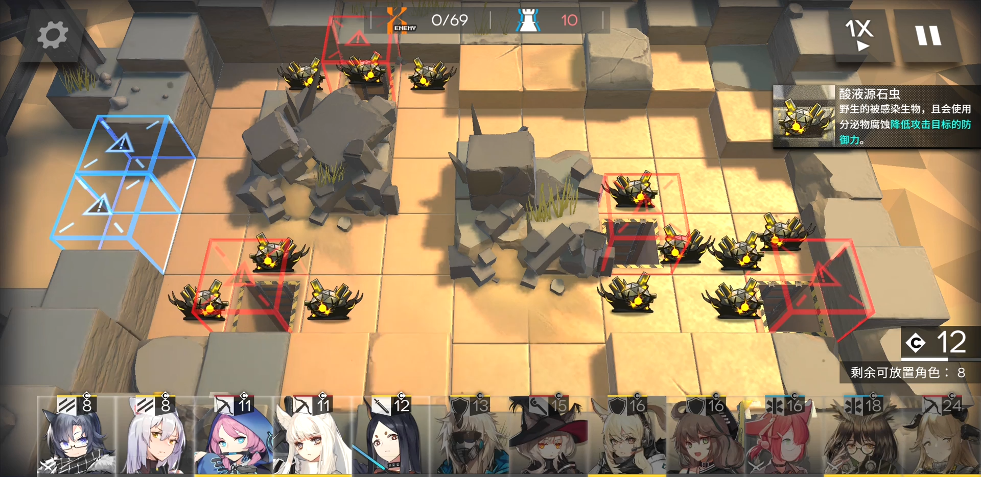 배치해야되는 곳을 노란 투구벌레가 막고 있으니 스나이퍼 + 뱅가드로 처리하자