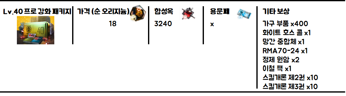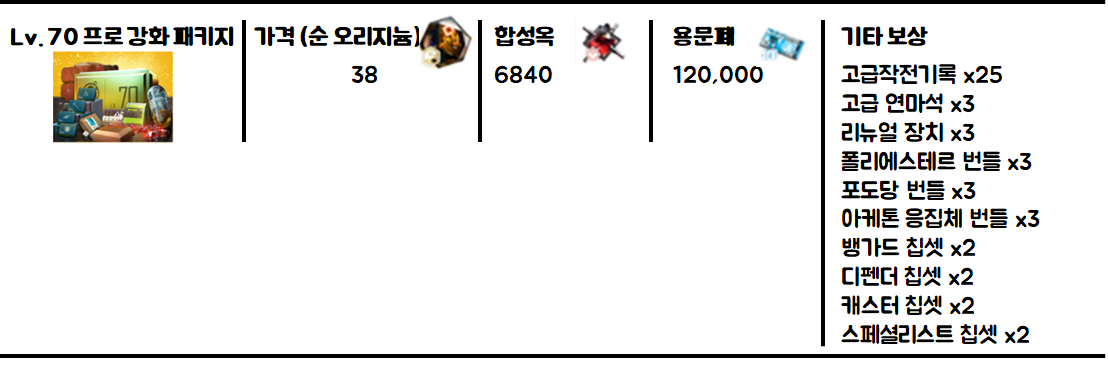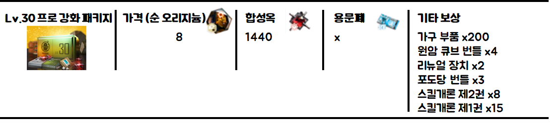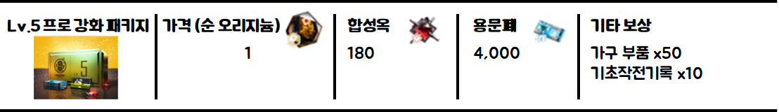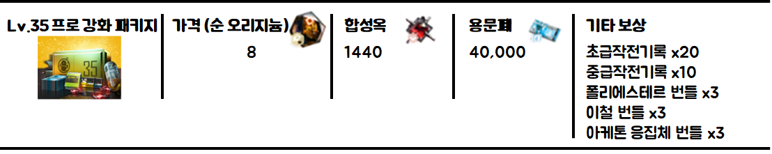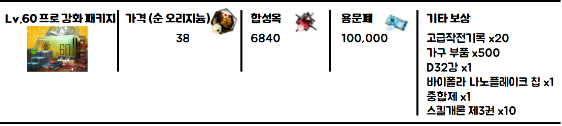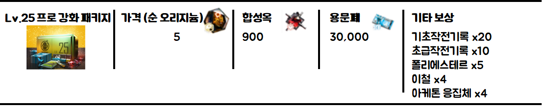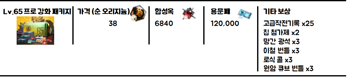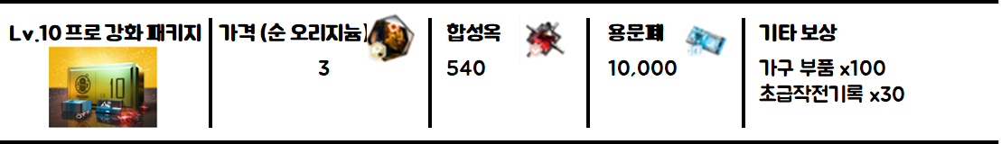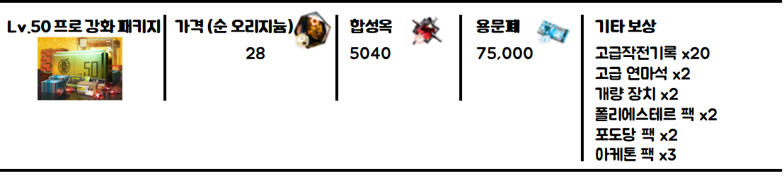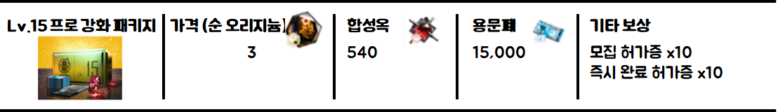 레벨 별 프로 강화 패키지 총 정리입니다.