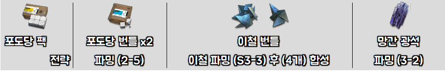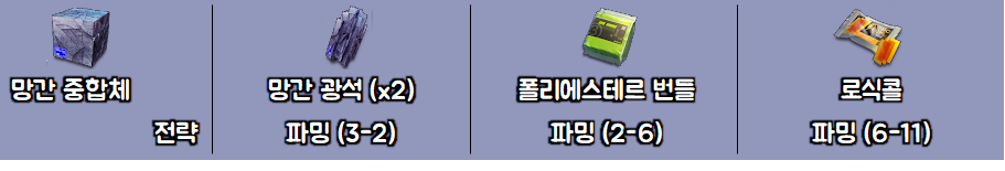 재료별로 어디서 파밍해야되는지,