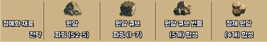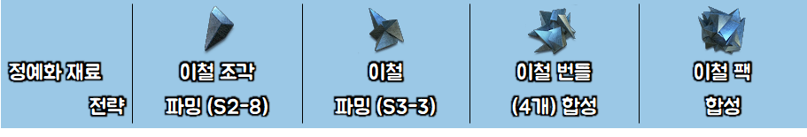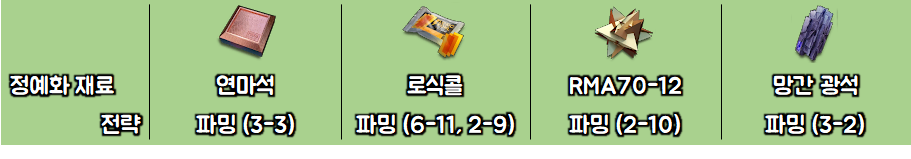 ㅇ 정예화 재료 별 전략