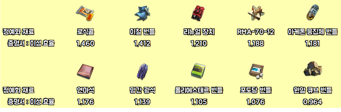 ※ 주의 : 이 글은 하나의 정예화 재료에 대한 효율만을 분석한 글입니다.