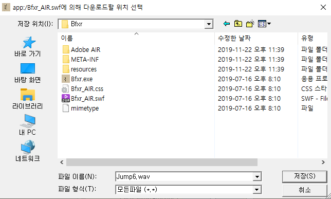 여기서 Bfxr.exe를 실행시켜 주시면 됩니다.