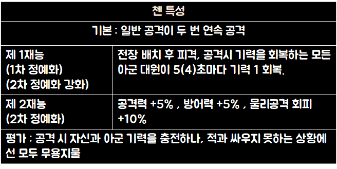 ㅇ 첸 특성, 스킬 분석 & 평가