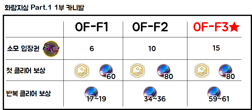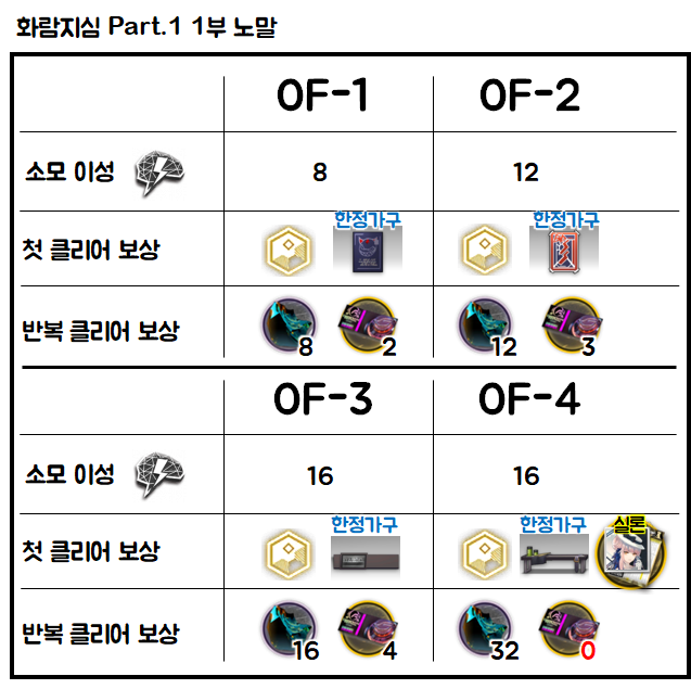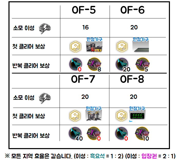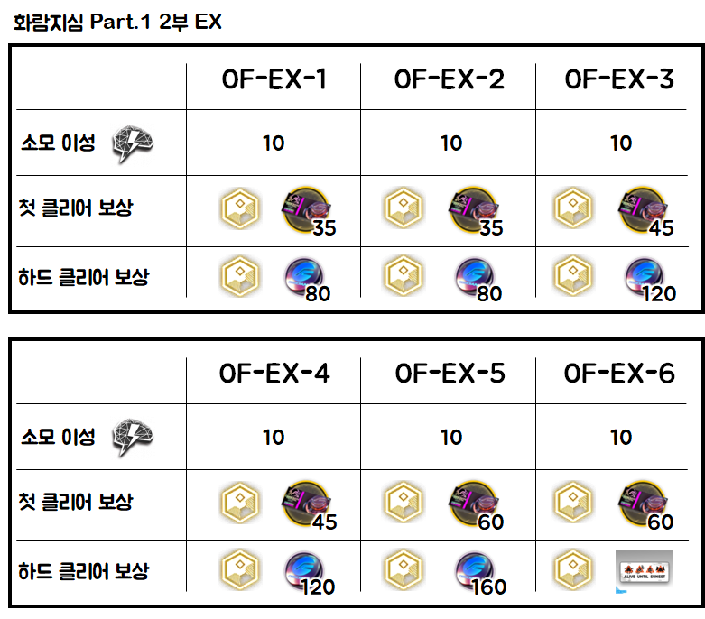 ※ OF-EX 맵은 반복 클리어 보상이 없습니다. 첫클리어 보상만 받으시면 됩니다.
