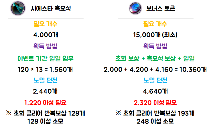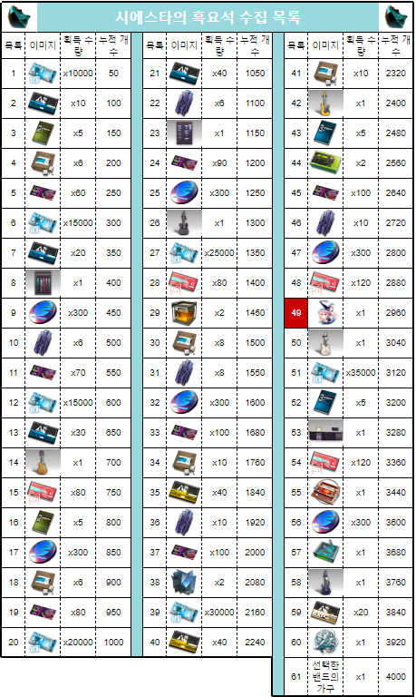 - [시에스타 흑요석]은 누적으로 총 4000개 획득 시 모든 보상 획득 가능