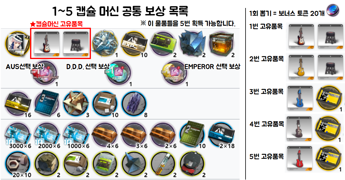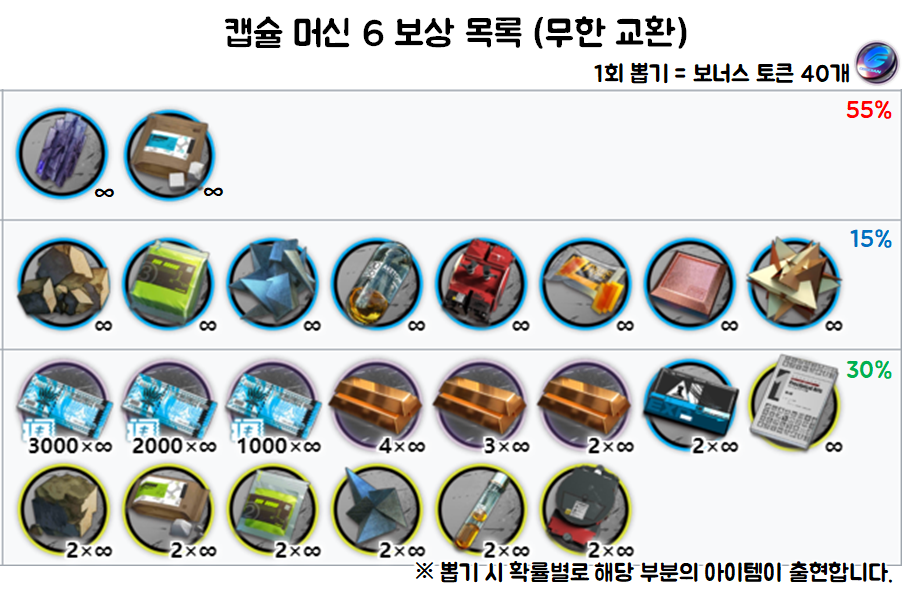 ㅁ 캡슐 머신 보상 목록 [보너스 토큰]