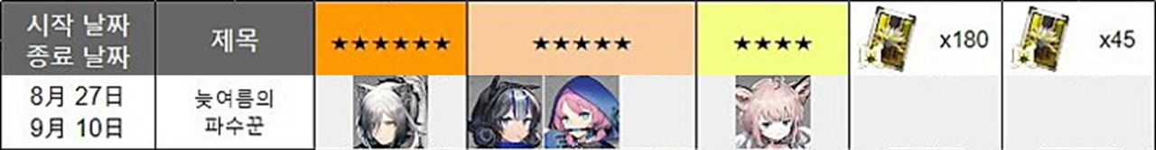 픽업 : 6성 슈바르츠 5성 글라우쿠스 블루포이즌 4성 수수루