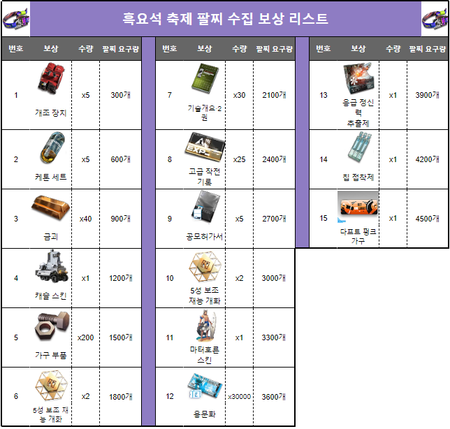 - [흑요석 팔찌]는 모든 보상 획득까지 총 4500점 필요