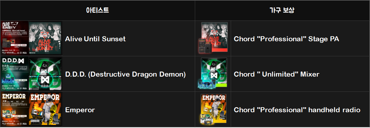 그 중 Part. 1에서는 아티스트를 시작과 함께 선택하게 되며 그에 따른 가구 보상을 받게 됩니다.