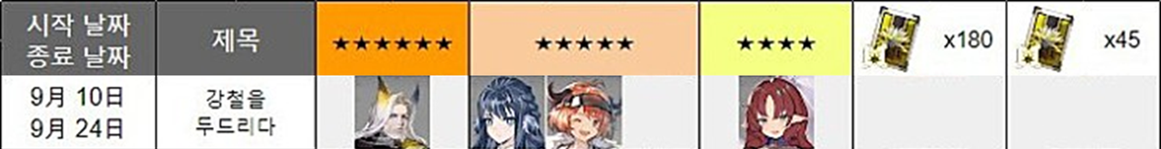 픽업 : 6성 헬라그 5성 아스테시아 크루아상 4성 머틀