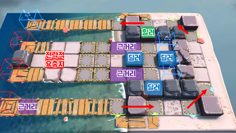 ★ Tip 1 ) 주로 아랫라인에서 스나이퍼가 나오기 때문에 전진배치하여 빨리 잘라주는게 좋다.
