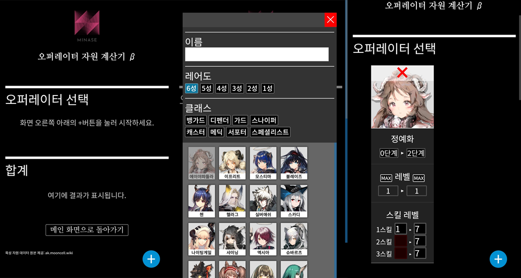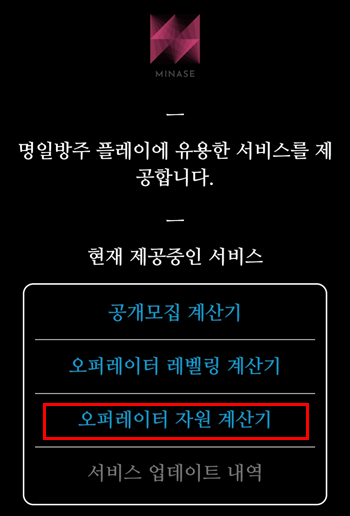 1. 위의 이미지를 클릭하여 사이트 접속 - [오퍼레이터 자원 계산기] 클릭