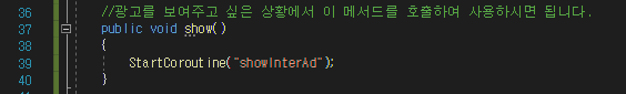 전면 광고를 보여주고 싶을 때 show를 호출해서 보여주면 되는데