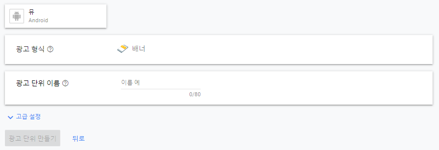광고 단위 만들기를 클릭하면 광고 단위 생성 완료!