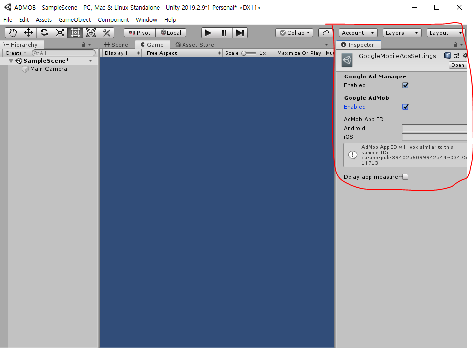 우측 Inspector 창에 나오는 Google Ad Manager와 Google AdMob을 Enabled 체크해줍니다!