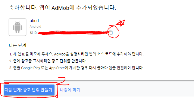 APP ID와 광고 ID를 메모장 같은곳에 적어 준비해 놓으세요.