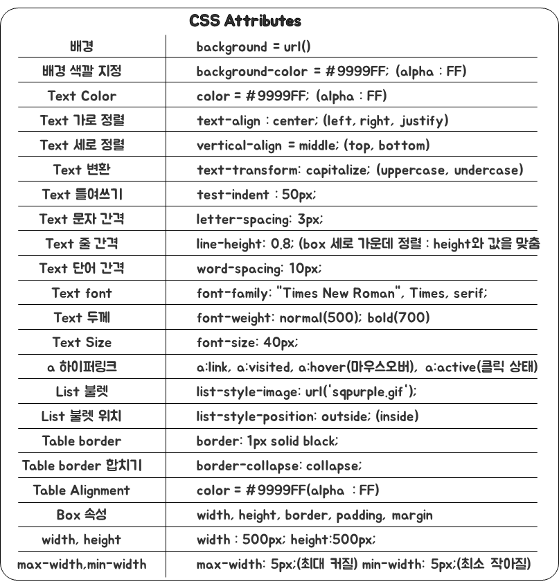 ㅁ CSS 속성 (Attributes)