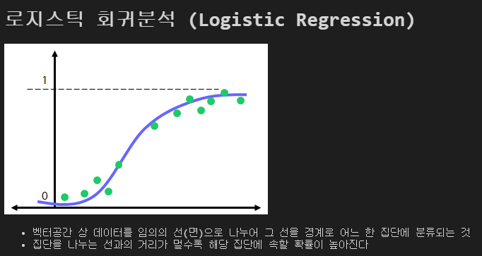 로지스틱 회귀분석은 변수를 선(면)으로 나누어 어느 한 집단으로 분류하는 분석합니다.