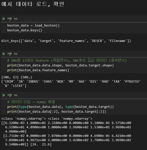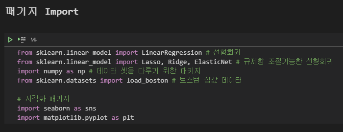 from sklearn.datasets import load_boston # 보스턴 집값 데이터