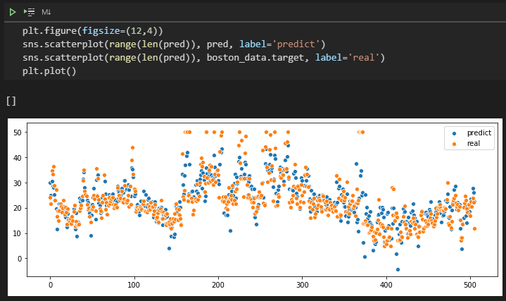 보스턴의 집 값 데이터를 가져와서 회귀분석을 진행했습니다.