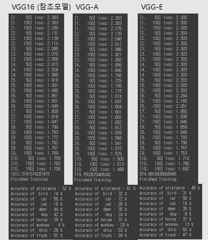 논문 구현은 VGG-A와 VGG-E만 했는데 모델링은 쉽습니다.