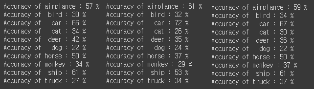 가장 좌측은 참조 링크에 있는 모델을 그대로 구현해서 학습시킨 결과이고