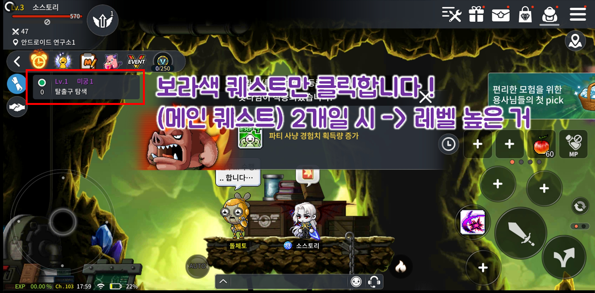 보라색 (메인 퀘스트) 만 진행해줍니다.