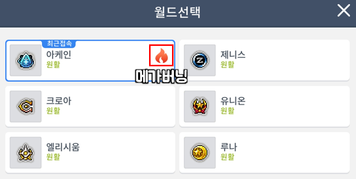 메가버닝 이벤트 중인 아케인 서버에서 시작했습니다 (새로 오픈한 서버)