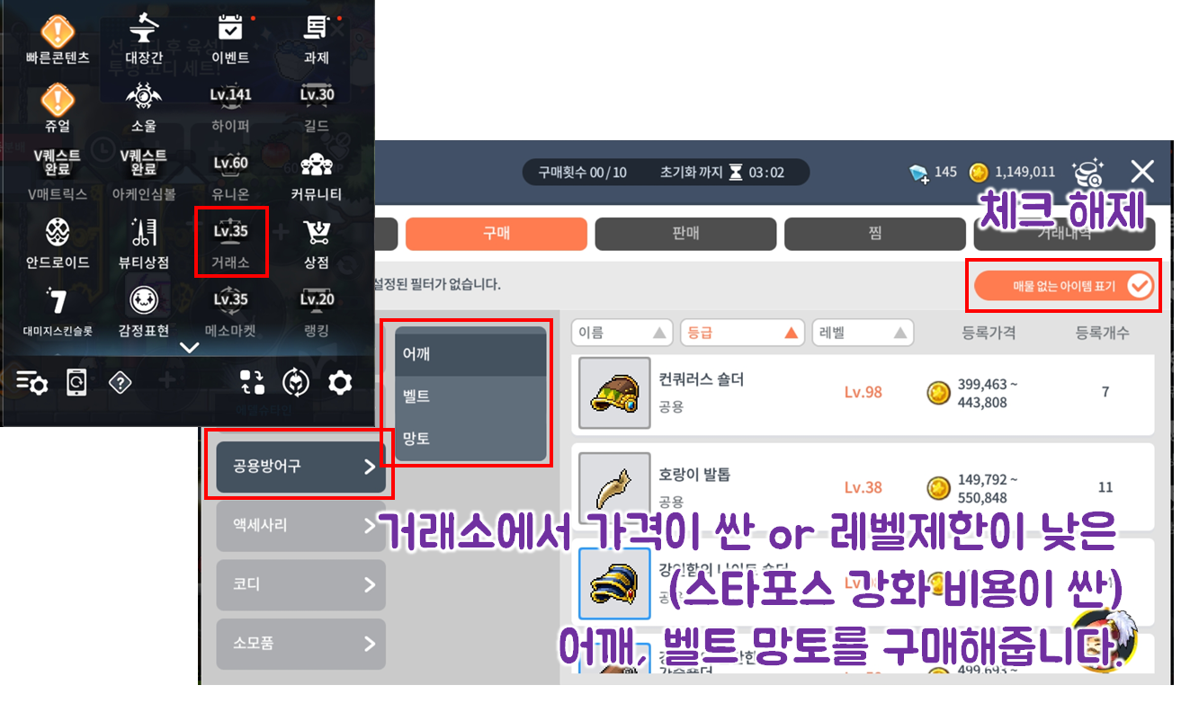 거래소에서 공용 방어구 어깨, 벨트, 망토를 사서 스타포스 3성 강화권 + 메소로 별을 채워주시면 됩니다.