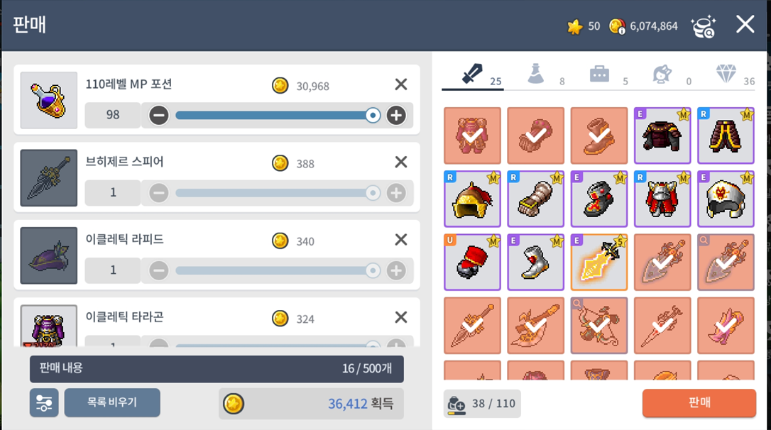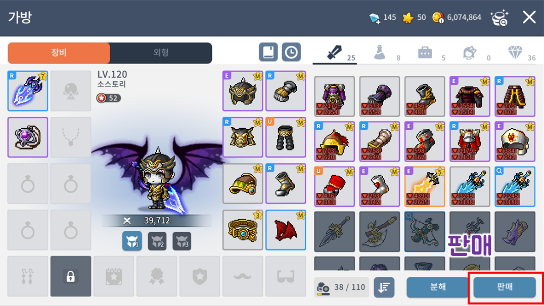 그러면 인벤토리를 편하게 비우실 수 있습니다.