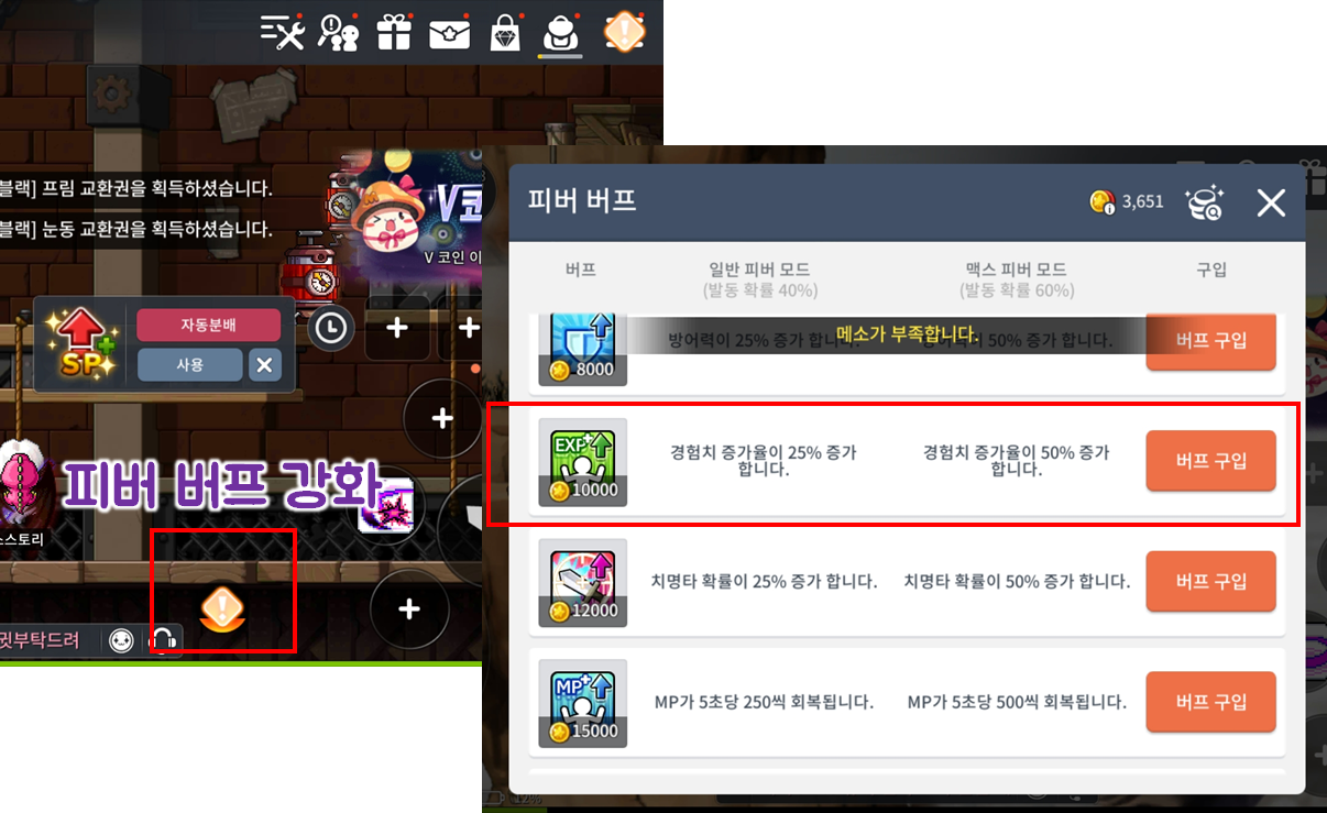메소써서 꼭 강화해야 할 것 ! 피버버프 강화입니다.