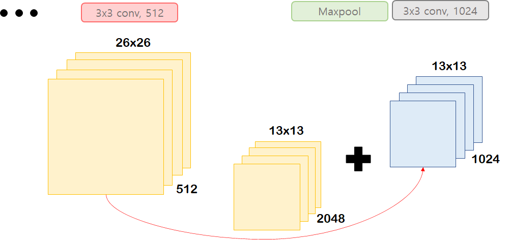 마지막 Maxpool 전 추출한 feature map을 last conv layer 즉, darknet을 빠져나가기 전