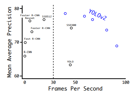 YOLO v2는 SSD와 비교했을 때 대부분의 면에서 우수한 성과를 달성합니다.