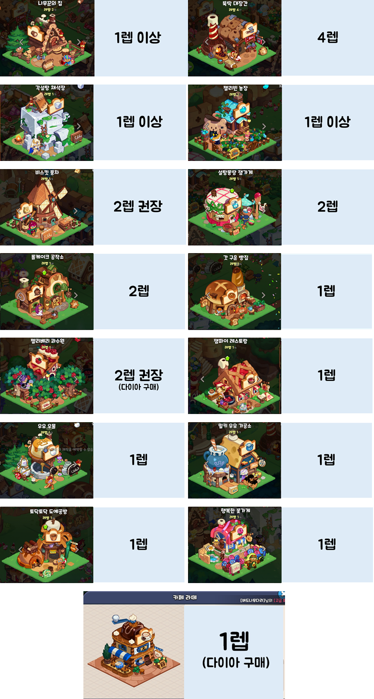 ※ 카페라떼 건물은 쿠키성 8렙 조건을 모두 맞췄을 때 건설하세요 ! ※