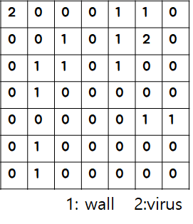 solution(N, M, virus, walls, graph, spaces)