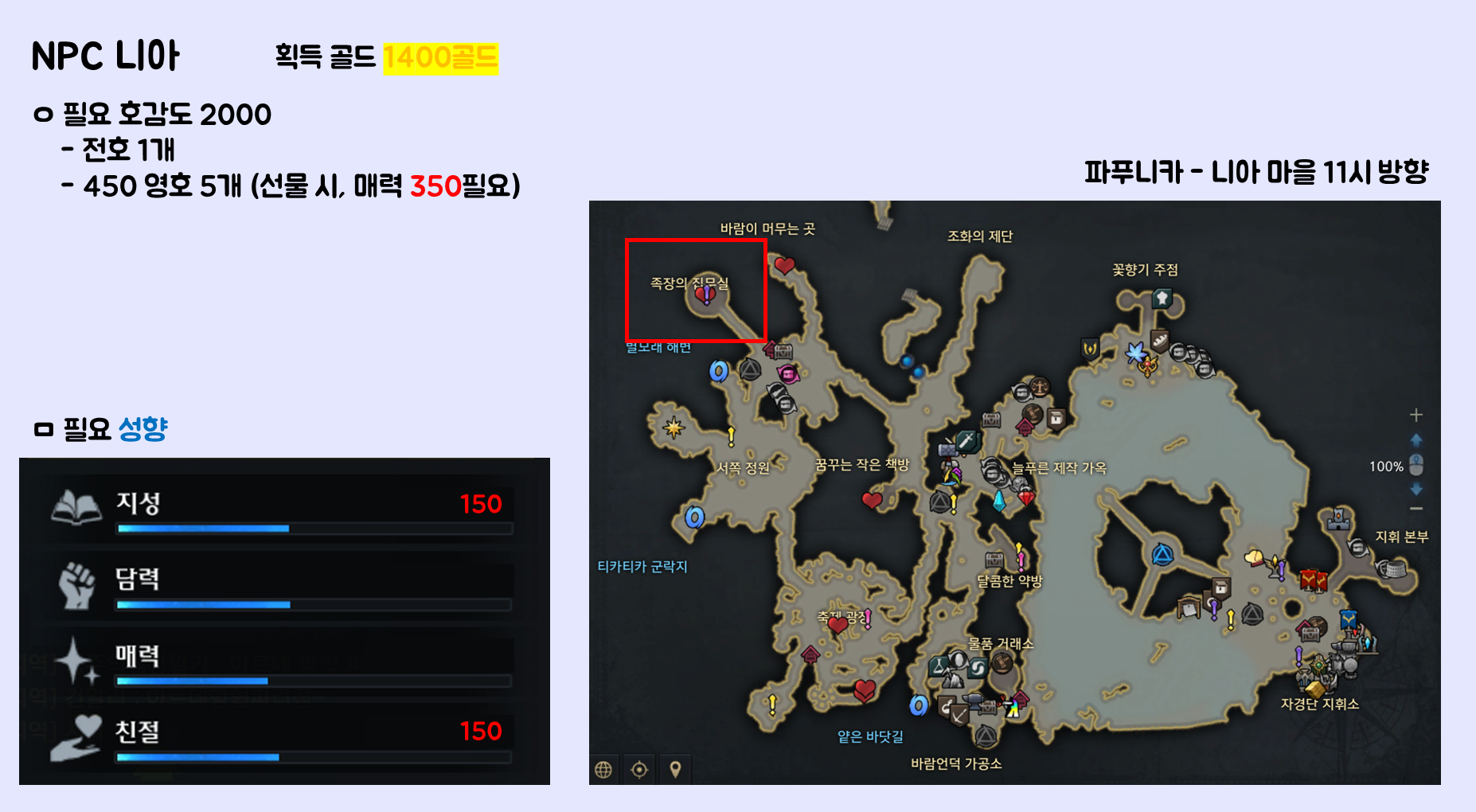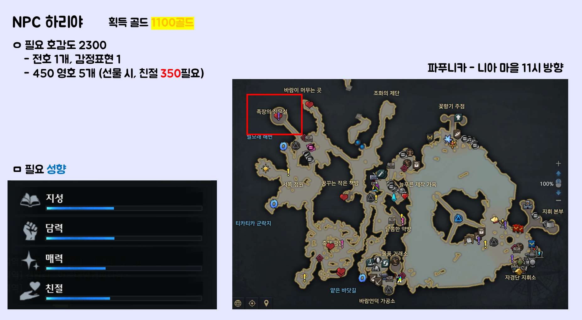 ㅇ 우호도 골드 보상 NPC