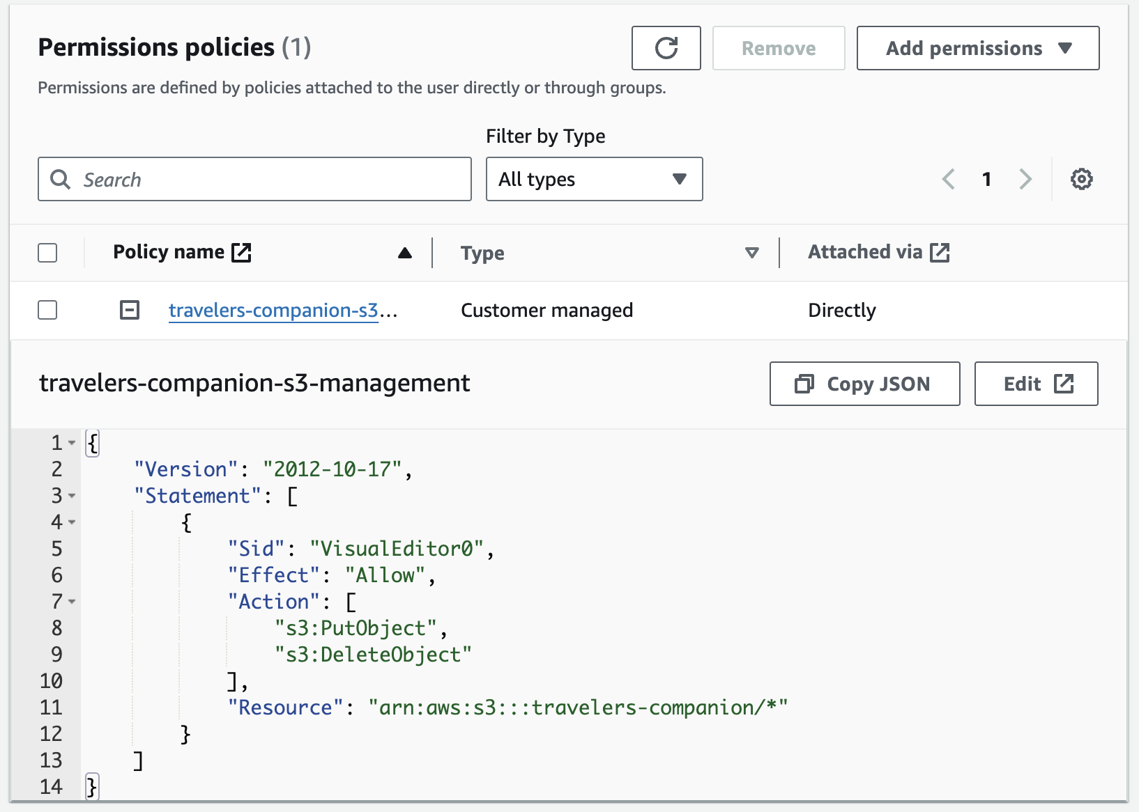 - Permission의 경우에는 PutObject와 DeleteObject 권한을 부여합니다.