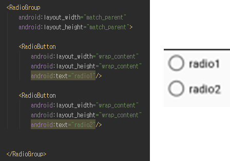 RadioButton은 RadioGroup중에서 한 개만 체크 가능