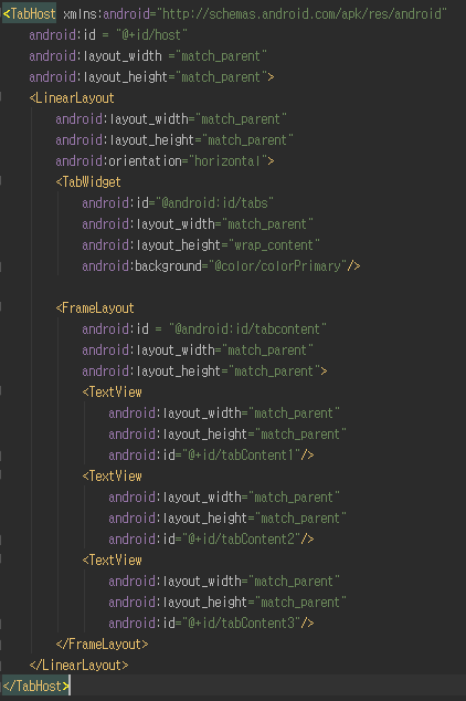 참고로 중요한 것은 TabHost에서 TabWidget의 id와 FrameLayout의 id는 라이브러리에 포함되어 있다는 것입니다.