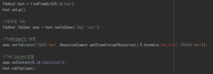TabSpec이 하나의 Tab을 구성하는 것이고