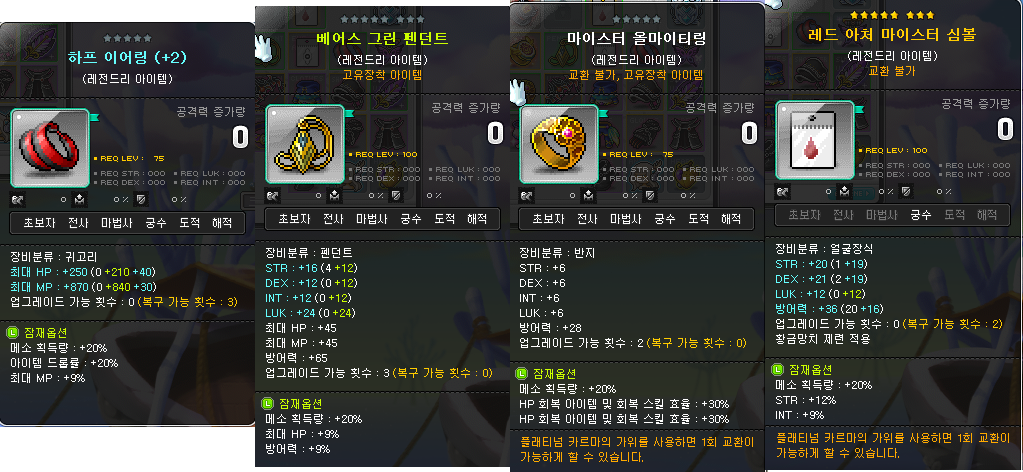 쌓아놨던 메소 130억을 털어서 아획 + 메획템을 구매했습니다.