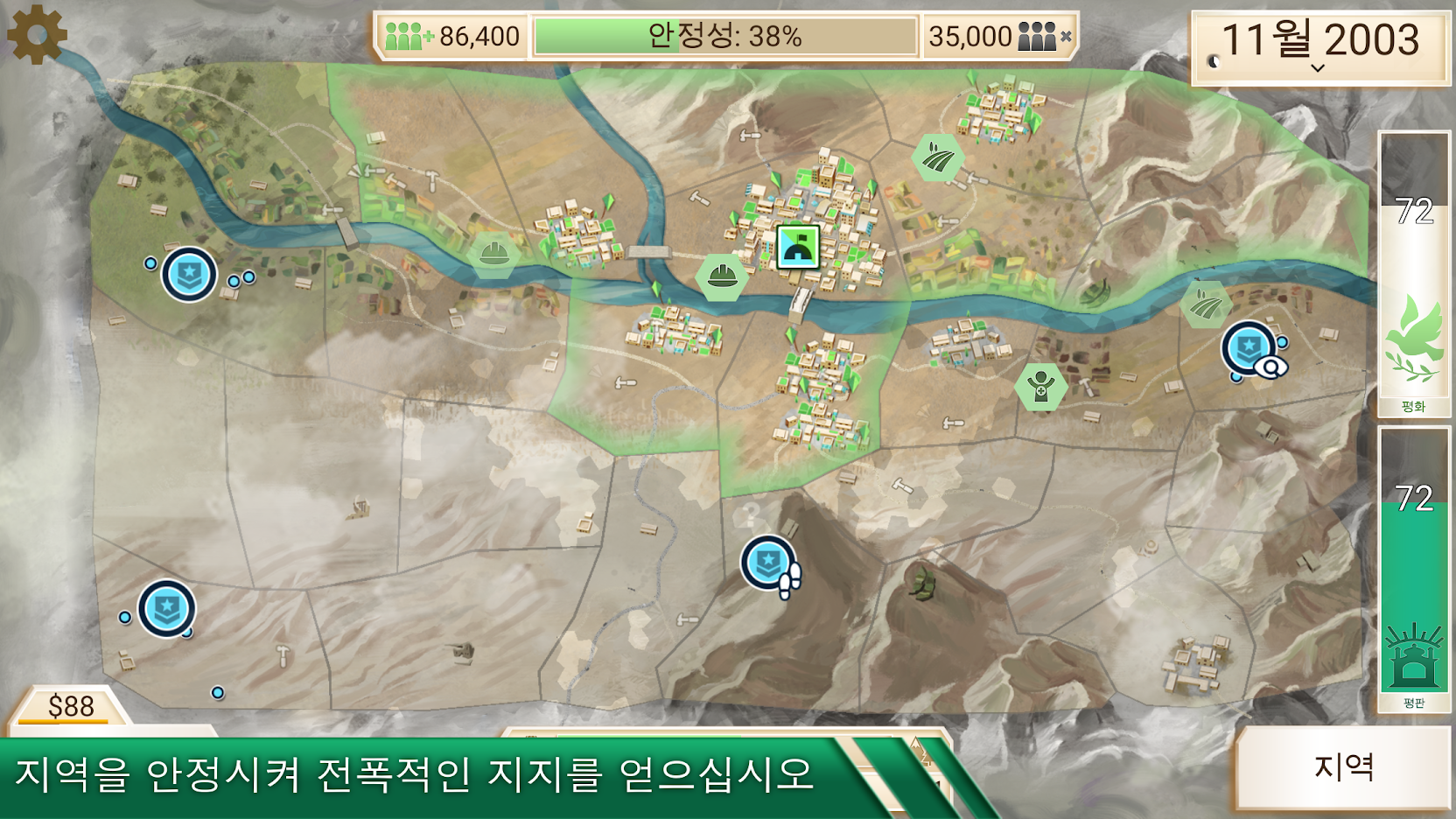 다양한 전략을 활용해서 반란군들을 진압하고, 도시를 안정시켜 세력을 확장시키는 게임입니다.
