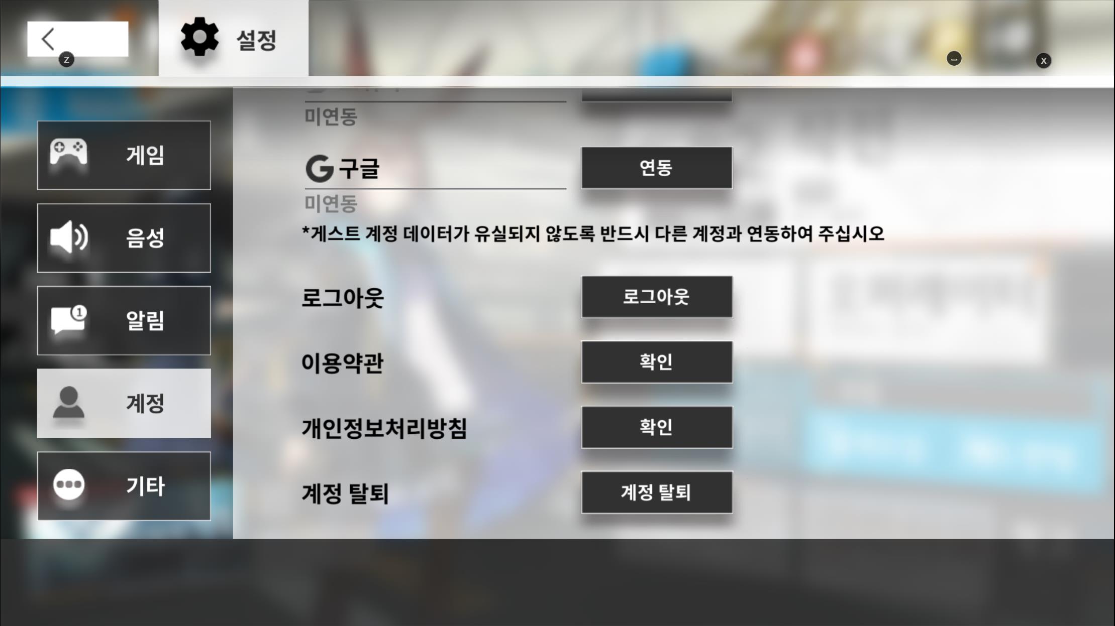 ※ 한섭은 게스트로 로그인하게 되면 기기에 데이터가 강제로 저장되어 리세가 불가능합니다.