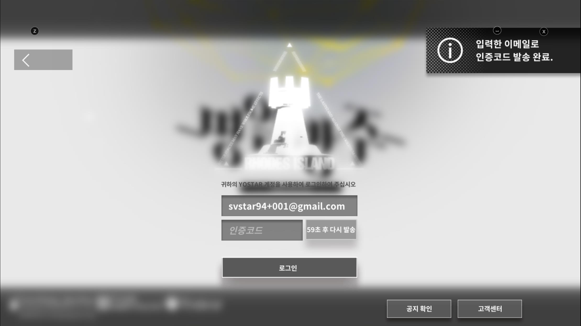 1. 처음에 로그인하면 Yostar로 Gmail 인증코드를 받고 로그인해줍니다.