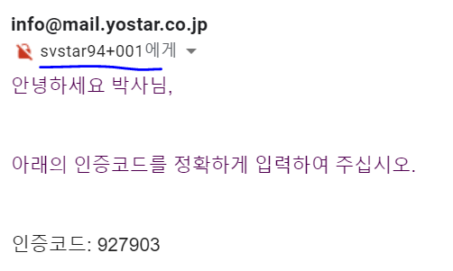 이런식으로 Gmail 아이디 위에 +001 을 붙이고 인증코드를 발송하면
