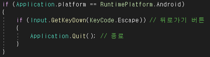 if (Application.platform == RuntimePlatform.Android && Input.GetKeyDown(KeyCode.Escape))