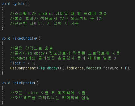 | Update 종류, 구분 | 유니티 배열 선언 (Array) | 특수 기호 사용 방법 | ★Coroutine |