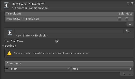 New State라는 임의의 상태에서 Explosion이라는 Animation 상태로 가려면