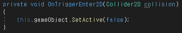 OnTriggerEnter는 트리거 상태의 무언가와 충돌했을 때 호출되는 함수
