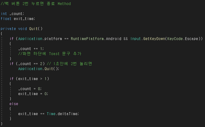 Handheld.Vibrate(); 1초간 진동 (코드 메인카메라에 삽입)